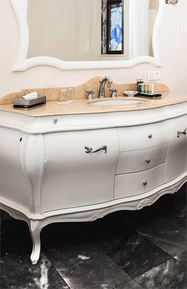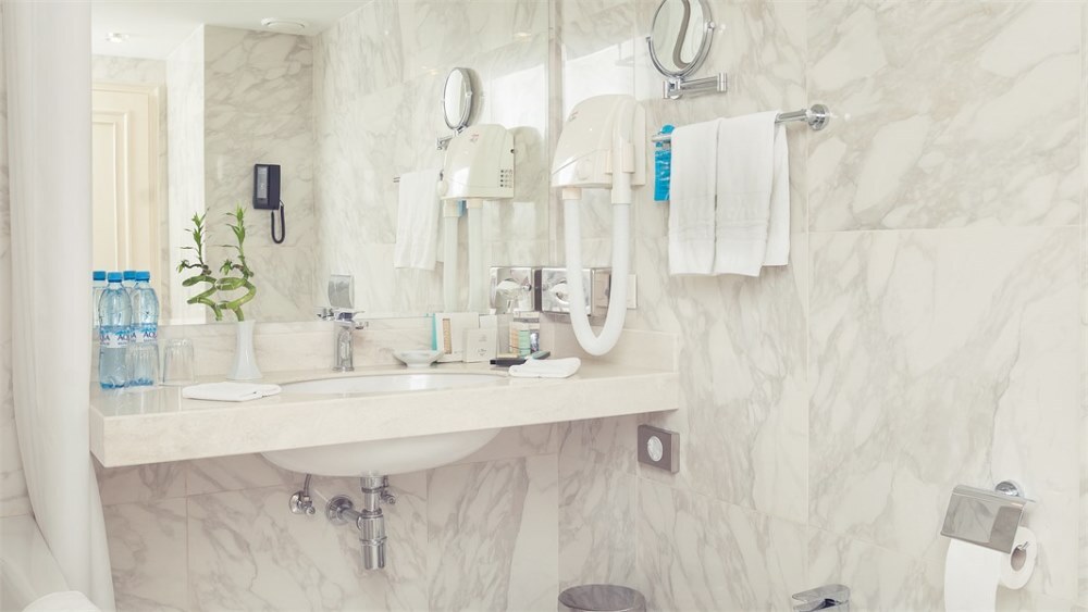 В комплект банных принадлежностей входят полотенца для лица, тела, ног, а также шампунь для волос, гель для душа, крем-бальзам для тела, мыло и шапочка для душа. Смена и пополнение банных принадлежностей происходит ежедневно, кроме того, во время «Вечернего сервиса» банные принадлежности при необходимости пополняются, а полотенца меняют на свежие. На этой вилле каждый вечер оказывается услуга «Вечерний сервис»: горничные перестелют и подготовят для сна кровати, при необходимости поменяют банные принадлежности и полотенца, а на постели у подушки с пожеланиями хорошего отдыха оставят сладкий презент от Отеля «Рэдиссон Лазурная».