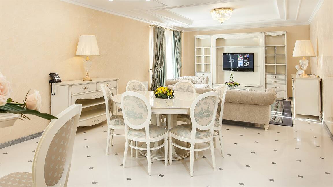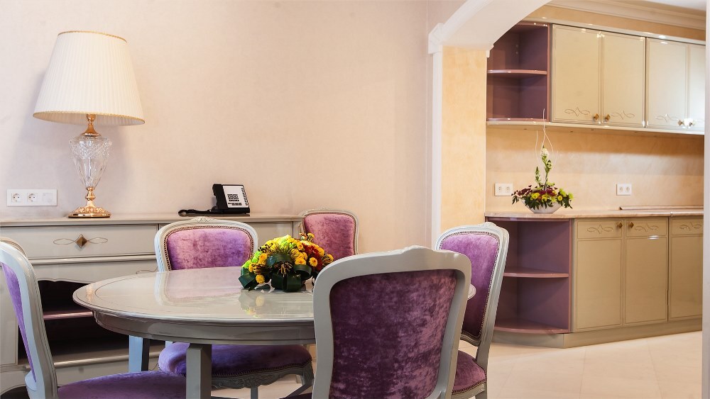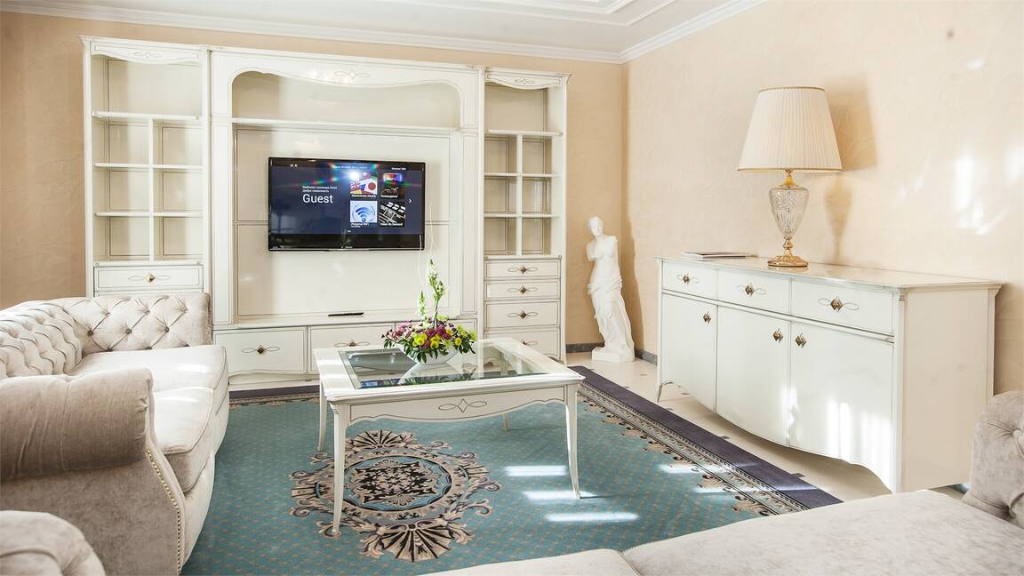 В номере: Кондиционер/Сплит-система, Телевизор, Бесплатный Wi-Fi, Кухня, Сейф, Балкон/терраса, Спутниковые каналы, Мини-бар, Туалетные принадлежности, Фен, Диван-кровать, Ванная комната, Чайник, Холодильник, Обеденный стол, Телефон, Шкаф, Стул/Стулья, Туалетный столик, Зеркало, Посуда, Прикроватная тумбочка, Журнальный столик, Кресло, Кровать двуспальная, Набор одноразовой косметики, Стол, Столовая зона, Тапочки, Халат, Гладильные принадлежности