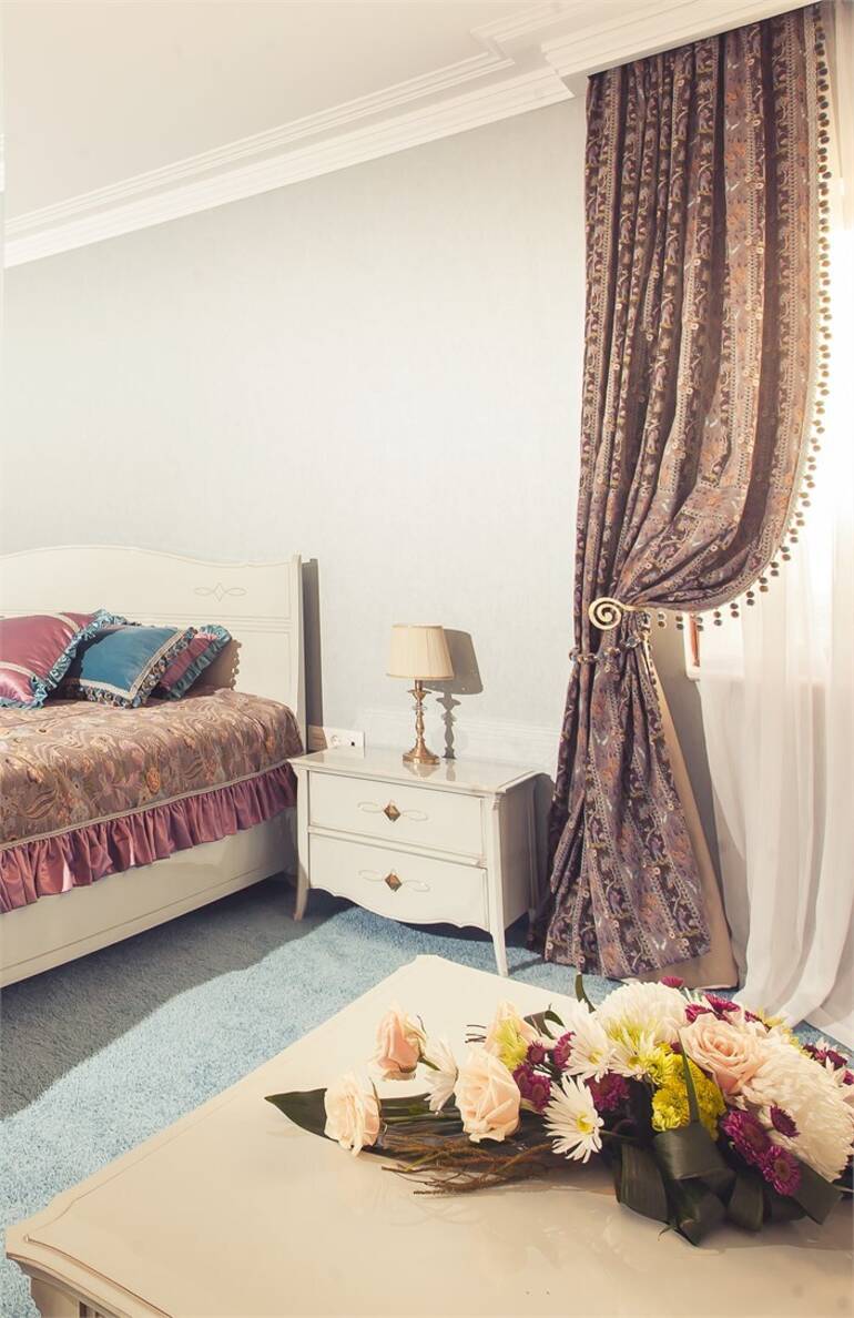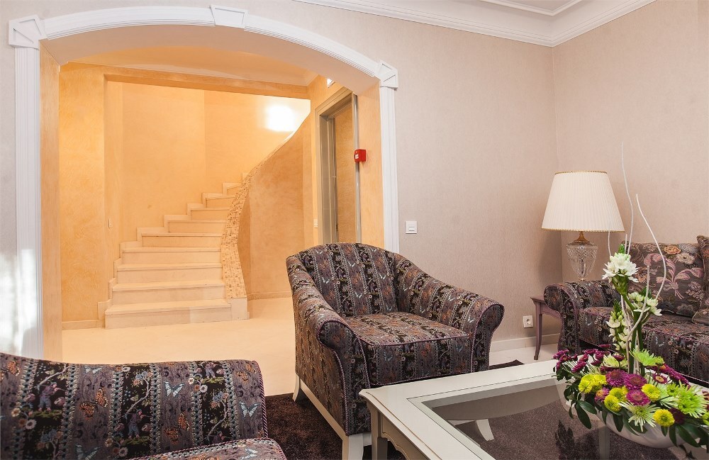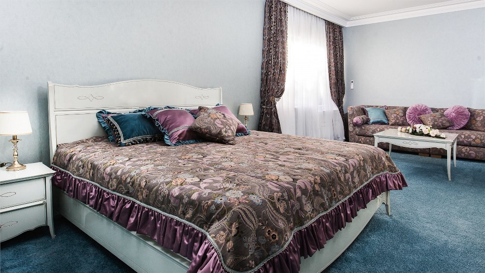 В «Люксах» две комнаты. В спальной расположена большая двуспальная (французская) кровать, телефон спутниковой связи, телевизор с дистанционным управлением двадцатью каналами, интерактивное платное телевидение, мини-бар и сейф с кодовым замком. Гостиная обставлена мягкой мебелью — диваном и двумя креслами. Здесь же установлены дополнительный телефон и еще один телевизор.